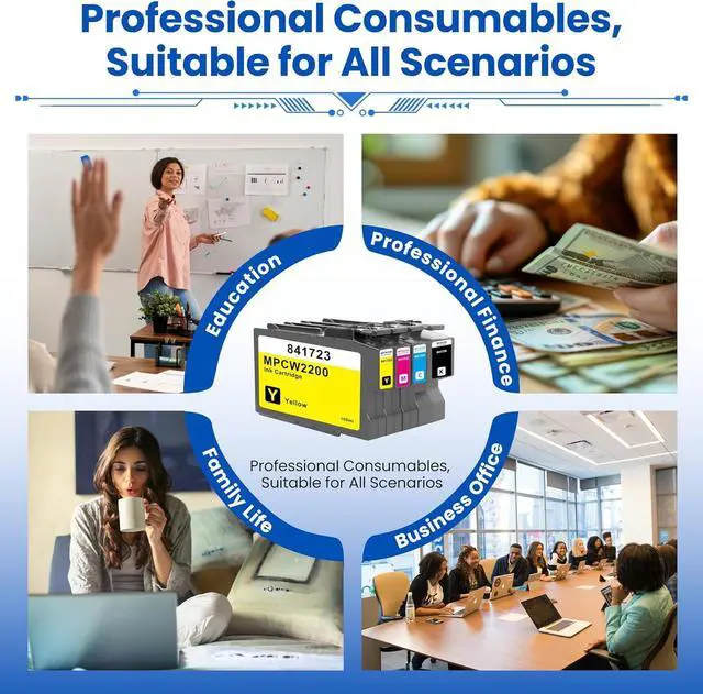 Package Contents: 1 X MP CW2200 black 841720, 1 X MP CW2200 cyan 841721, 1 X MP CW2200 magenta 841722, 1 X MP CW2200 yellow 841723, total 4 Compatible MP CW2200 Ink Cartridges