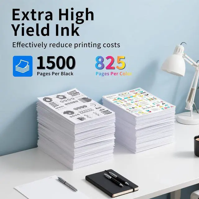 High Page Yield: 1500 pages per black 910XL ink cartridges, 825 pages per color 910XL ink cartridges (Letter/A4, at 5% coverage)