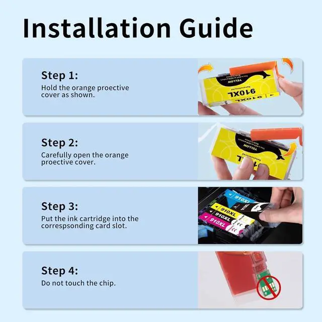 With Advanced Chip: Our 910XL ink cartridge is equipped with a state-of-the-art built-in chip, which enables seamless and instant recognition by your printers, ensuring a smooth printing start every time