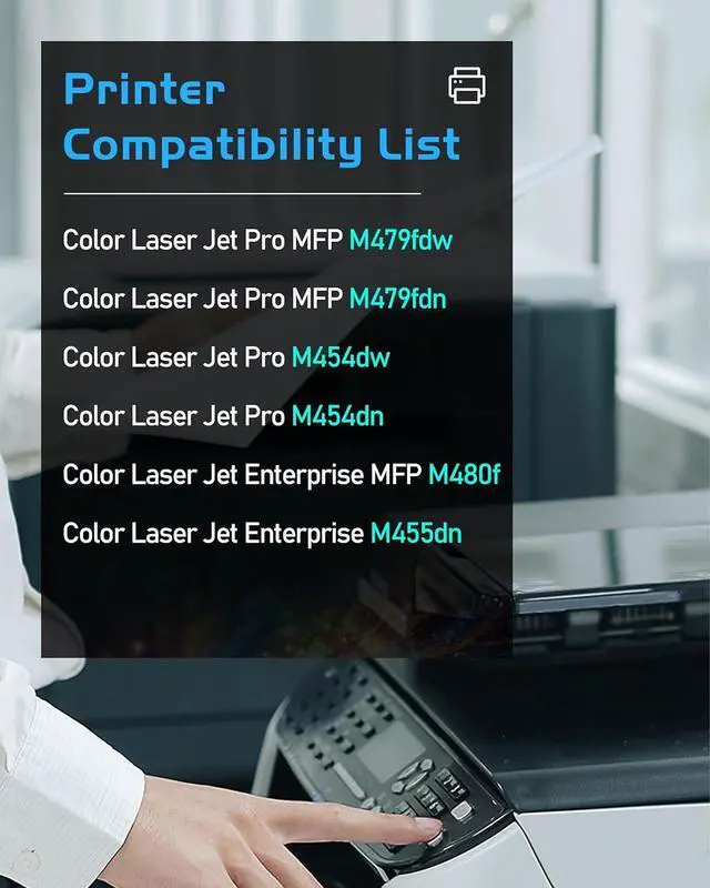 Printer Compatibility: 414X W2020X toner cartridges Compatible for HP Color Laser Jet M454 M454dn M454dw, HP Color Laser Jet Pro MFP M479 M479dw M479fdn M479fdw, Color Laser Jet Enterprise M455dn, Color Laser Jet Enterprise MFP M480f