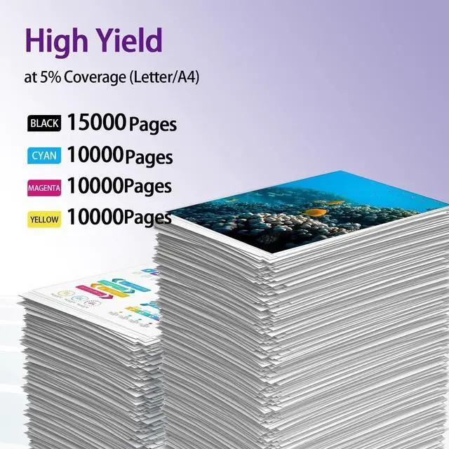 [Print Yield] Black cartridges offer up to 15,000 pages, and color cartridges offer up to 10,000 pages (5% coverage on A4 paper)