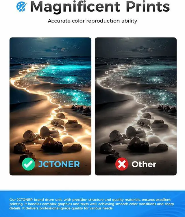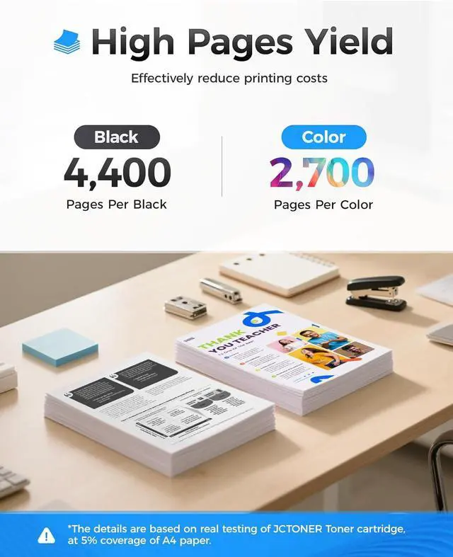 The latest chip version: The JCTONER toner cartridges are equipped with the latest version of built-in chips, ensuring perfect compatibility between each toner cartridge and the printer. This enables you to print efficiently while maintaining stability and reliability, making installation convenient without the need for manual adjustments. All JCTONER toner cartridges have undergone strict quality testing and have obtained ISO9001 certification. High-quality toner cartridges can meet the demand for high printing volume. The fine toner ensures clear and stain-free printing results and extends the lifespan of the printer. You can purchase with confidence.
