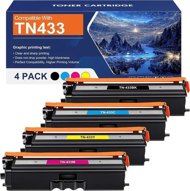 High Yield Toner Cartridge Package Contents: 1 x Black TN433BK Toner, 1 x Cyan TN433C Toner, 1 x Magenta TN433M Toner, 1 x Yellow TN433Y Toner (4 Pack )