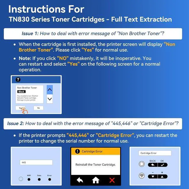 Easy to Install: Our TN830 toner is designed for effortless installation, enabling users to replace toners cartridges quickly and resume printing with minimal downtime