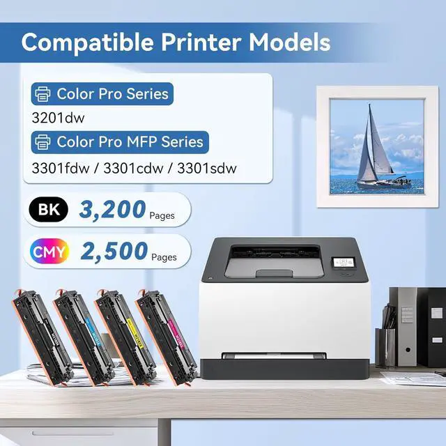 218X Toner Cartridges 4 Pack Works with: Color Pro MFP 3301fdw, Color Pro 3201dw, Color Pro MFP 3301cdw, Color Pro MFP 3301sdw