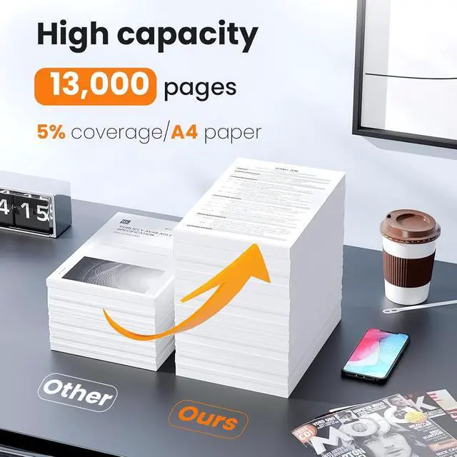 High Capacity:Each black toner cartridge yields approximately 13,000 pages (at 5% coverage).