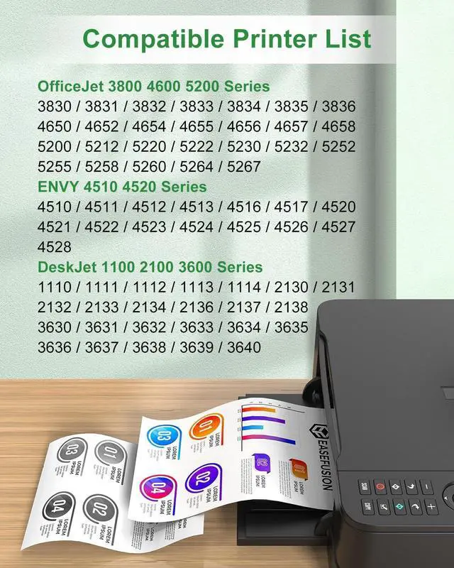 Exceptional compatibility: EaseFusion ink cartridges for hp printers 63 replacement for hp envy 4520 ink cartridges will work flawlessly with your DeskJet 1110 1111 1112 1113 1114; 2130 2131 2132 2133 2134 2136 2137 2138; 3630 3631 3632 3633 3634 3635 3636 3637 3638 3639 3640; Envy 4510 4511 4512 4513 4516 4517; 4520 4521 4522 4523 4524 4525 4526 4527 4528 printers