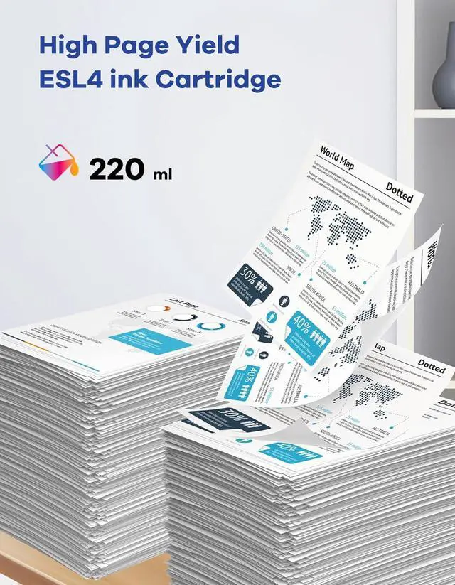 Reliable Quality Assurance: Rest easy knowing our ESL4 ink cartridges are ISO-9001 and ISO-14001 certified for stable, high-quality printouts every time. Whether it's documents, presentations, or photos, you can trust our cartridges to deliver consistent results