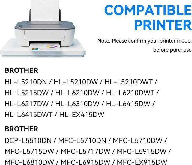 For use with: Brother HL-L5210DN HL-L5210DW HL-L5210DWT HL-L5215DW HL-L6210DW HL-L6210DWT HL-L6217DW HL-L6310DW HL-L6415DW HL-L6415DWT HL-EX415DW; DCP-L5510DN MFC-L5710DN MFC-L5710DW MFC-L5715DW MFC-L5717DW MFC-L5915DW MFC-L6810DW MFC-L6915DW MFC-EX915DW printer