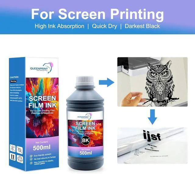 Screen printing ink for film capacity500ml Large-Capacity Refill, black screen film ink.