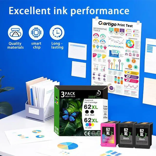 High quality: Our 62XL Ink Cartridges deliver vibrant, smudge-free prints with sharp text and rich colorsperfect for businesses, schools, hospitals, or frequent home users who demand professional results