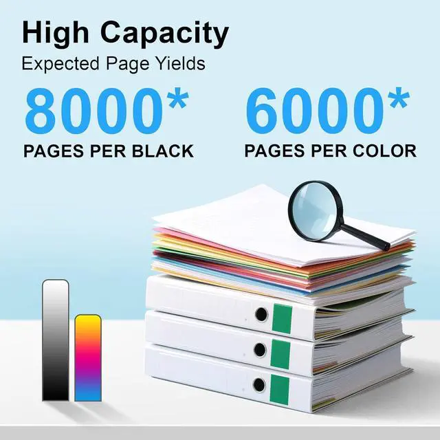 High Page Yield: Economical for High-Volume Printing Achieve an impressive output of up to 8,000 black pages and 6,000 color pages per cartridge (at 5% coverage on A4 paper). This high-yield design significantly reduces your cost per page and frequency of replacement, ideal for busy office environments