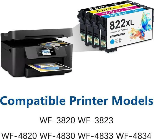 These 822XL Ink cartridges works with: WF-3820 WF-3823 WF-4820 WF-4830 WF-4833 WF-4834 Printers