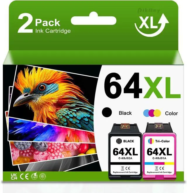 Package Contents: 1 x Black 64XL ink cartridge, 1 x Tri-color 64XL ink cartridge (1 Black, 1 Tri-Color, Combo Pack)