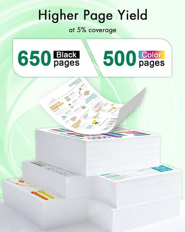 High Page Yield: 650 pages per Black 64xl ink cartridges, 500 Pages per Tri-Color 64xl ink cartridges (based on 5% coverage)