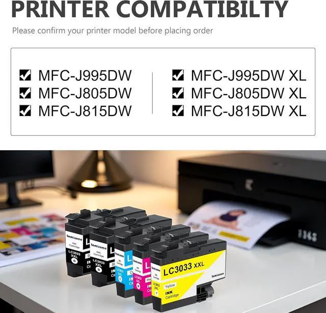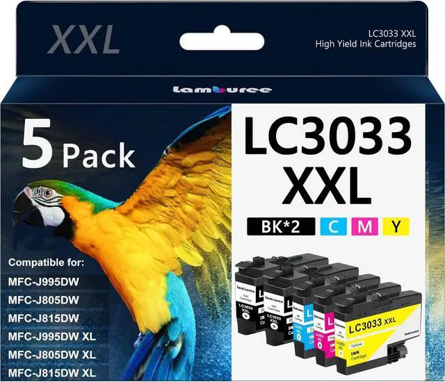 Includes: 5 Pack for LC3033XXL ink cartridges(2 x Black, 1 x Cyan, 1 x Magenta, 1 x Yellow) for printers to perfect balance of efficiency & cost control