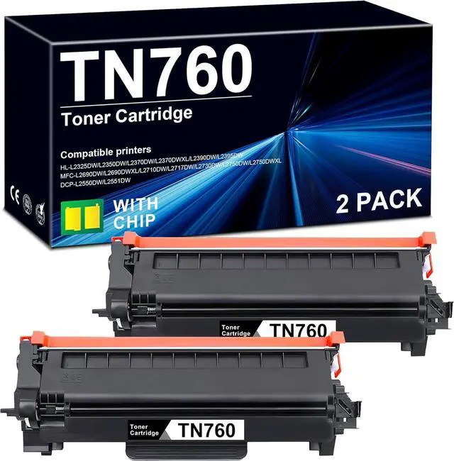 Package Contents: Replacement for Brother TN760 toner cartridges 2 pack with chip