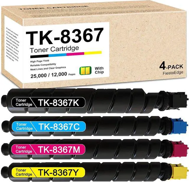 [TK-8367 TK8367 Toner Cartridge Page Yield]: Approximately 25,000 pages per black for TK8367K and 12,000 pages per color for TK8367C TK8367M TK8367Y toner cartridge (Letter/A4, at 5% Coverage)