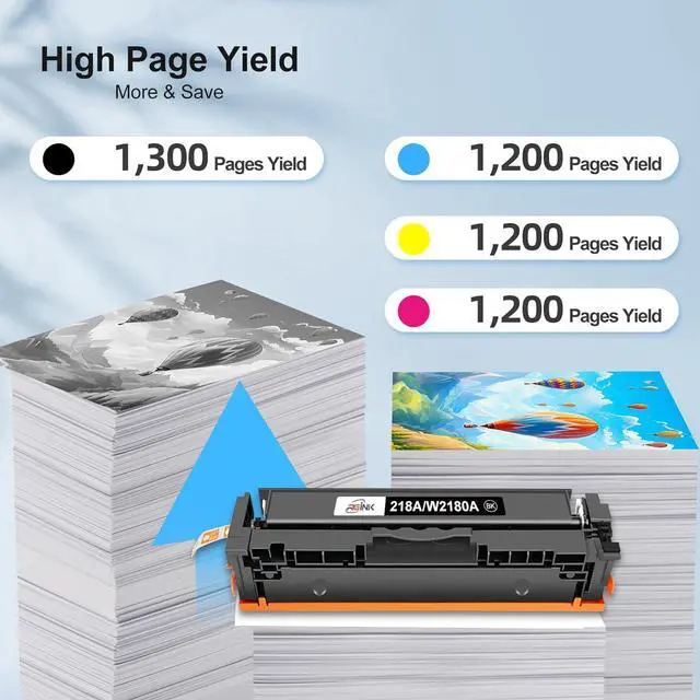 High Page Yield: 2,000 pages per 218A Black ,1,600 pages per 218A color, 53% higher output than the market for hp color laserjet pro mfp 3301cdw (Letter/A4, at 5% coverage)