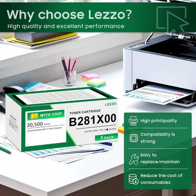 Quality Assurance: Lezzo B281X00 toner cartridge is dual ISO-9001 & ISO-14001 certified. Precision-engineered with premium-grade materials through rigorous testing to ensure quality and compatibility with your printer