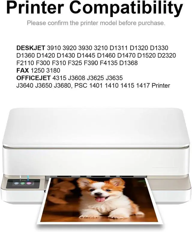 Printer Compatibility: DESKJET 3910 3920 3930 3210 D1311 D1320 D1330 D1360 D1420 D1430 D1445 D1460 D1470 D1520 D2320 F2110 F300 F310 F325 F390 F4135 D1368, FAX 1250 3180, OFFICEJET 4315 J3608 J3625 J3635 J3640 J3650 J3680, PSC 1401 1410 1415 1417 Printer