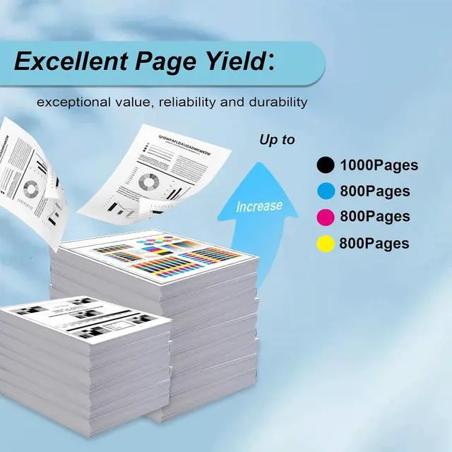 High Yield: Black up to 1000 pages, Color up to 800 pages at 5% coverage (letter/A4)