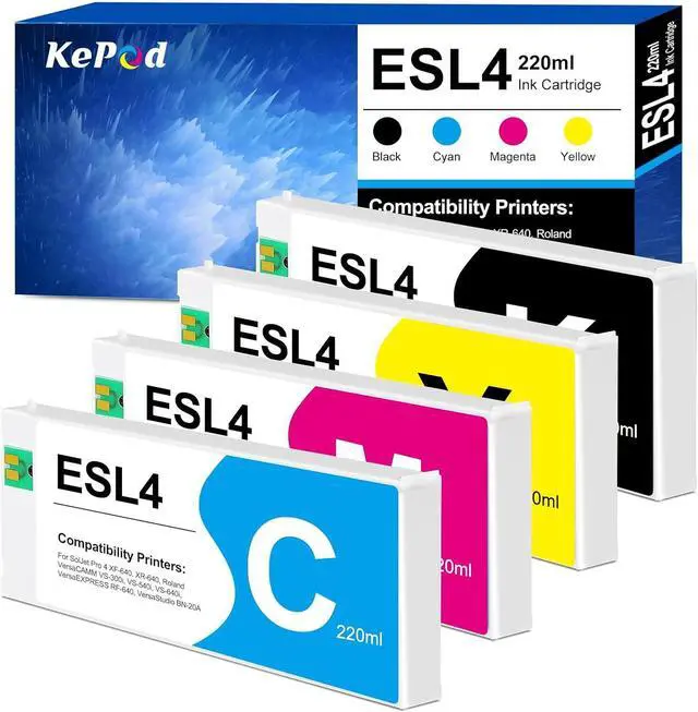 esl4 ink cartridgesCompatible with SolJet Pro 4 XF-640, XR-640, VersaEXPRESS RF-640, Roland VersaCAMM VS-300i, VS-540i, VS-640i, VersaStudio BN-20A