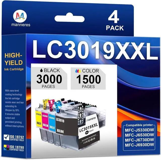 Package contents: 4 Pack-LC3019XXL(1Black+1Cyan+1Magenta+1Yellow) Ink Cartridges