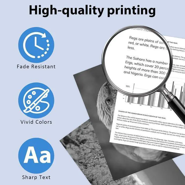 Provide sharp text, bold blacks, crisp graphics. Long lasting and resists fading.