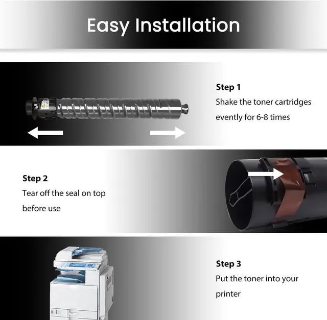 Easy to Install: Simply install the MPC3503 MPC3003 toner cartridge into the appropriate slot of your printer, and you'll be ready to print whatever you need