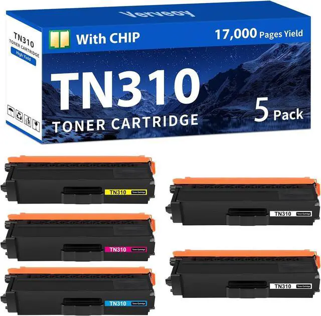 Verveoy Compatible for Brother TN310 TN310BK TN310C TN310M TN310Y Toner Cartridge 5-Pack for TN336 TN315 TN331 ( 2 Black, 1 Cyan, 1 Magenta, 1 Yellow )