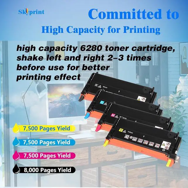 SkyPrint 6280 toner cartridges come with intelligent chips that automatically recognize and provide printing, Not damaging the machine Shake the toner cartridge horizontally 2-3 times before use to evenly distribute the toner,providing you with better clear and natural printing effects