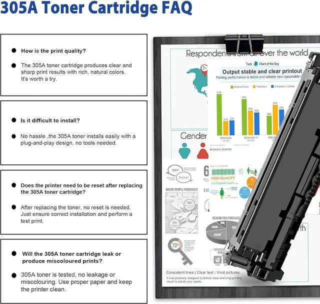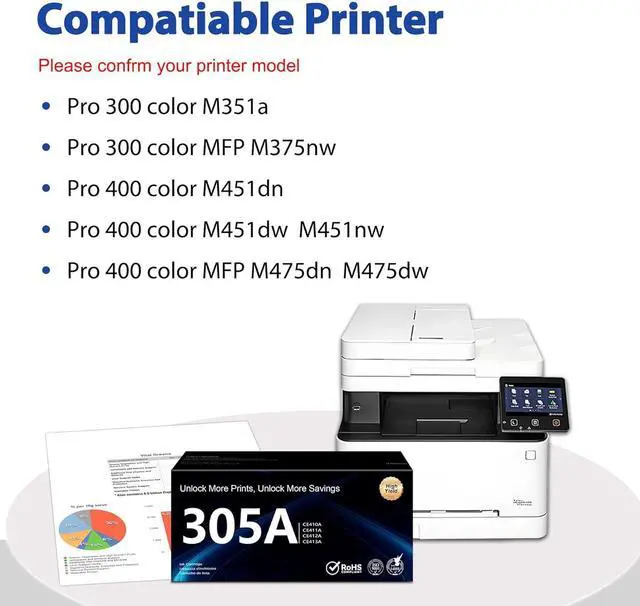 Latest Chip Technology: The 305A toner cartridge 4-piece combo pack feature the latest upgraded chip, ensuring fast and reliable recognition by your printer for consistent, trouble-free performance