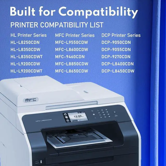 Compatible Printers: HL-L8250CDN HL-L8350CDW/CDWT HL-L9200CDW/CDWT MFC-L9550CDW MFC-L8600CDW MFC-9460CDN MFC-L8850CDW MFC-L8650CDW DCP-9050CDN DCP-9055CDN DCP-9270CDN DCP-L8400CDN DCP-L8450CDW Color Laser Printer