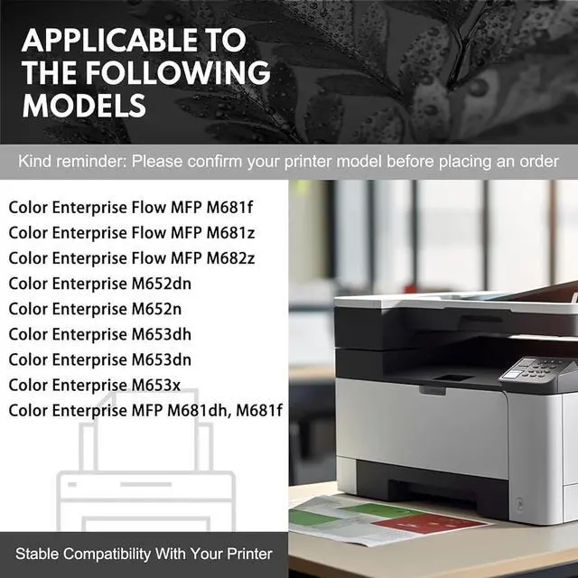 • Compatible printer series: Color Enterprise Flow MFP M681f, M681z, M682z; Color Enterprise M652dn,M652n, M653dh, M653dn, M653x; Color Enterprise MFP M681dh, M681f Printers