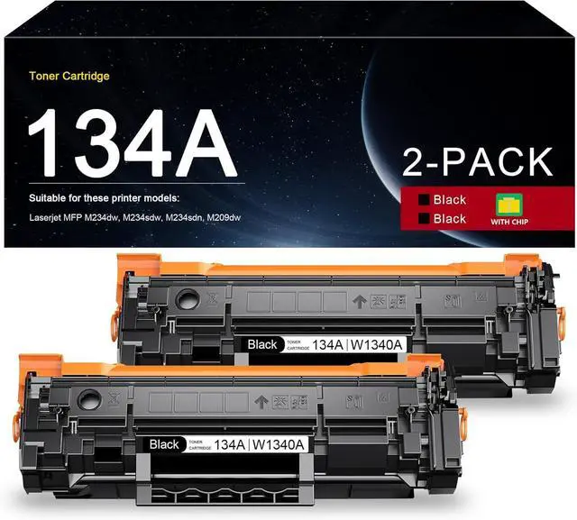 Package includes: Total of 2 packs to Replacement for HP 134A Black toner cartridge