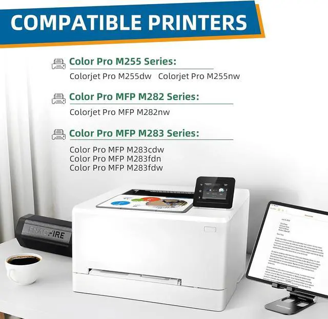 Printer Compatibility: the 4 pack 206A toner is compatible with color pro mfp m283fdw MFP M283cdw M283fdn, Color Pro MFP M282nw, HP Color Pro MFP M255dw, M255nw printers