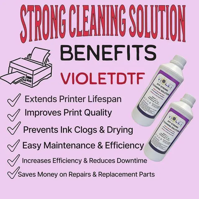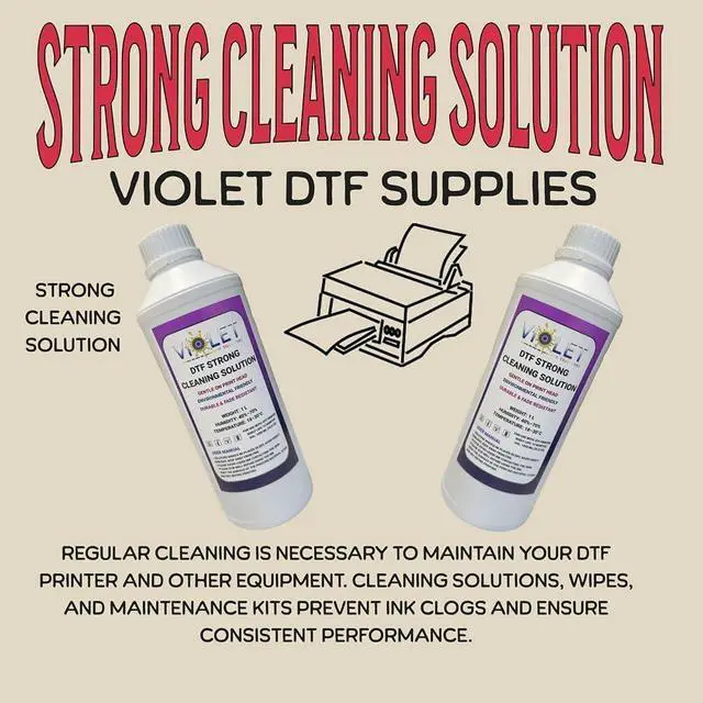 Powerful DTF Cleaning Solution for Printhead Maintenance: Effectively remove ink residue, dust, and buildup from your DTF printer heads using this strong DTF cleaning solution. Designed for Ep-son printhead cleaning, it helps maintain high-quality prints and smooth performance.