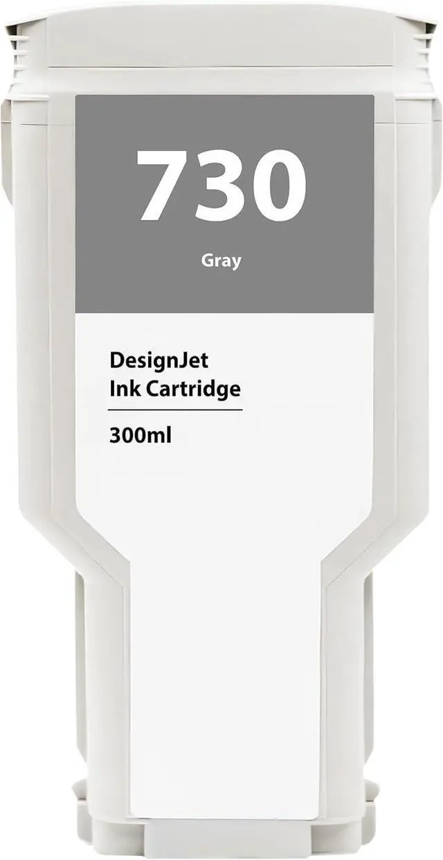 The Package Contains: 730 Ink Cartridge Gray P2V72A 1-Pack, each with a capacity of 300 ml