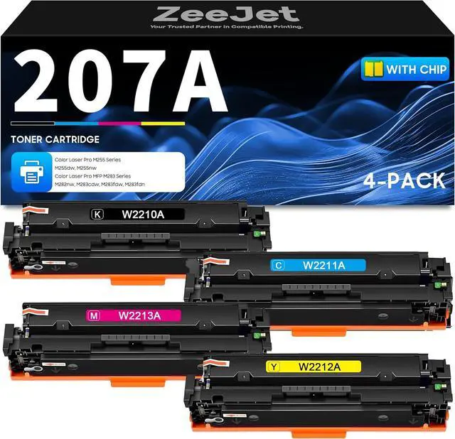 Product Name: Zeejet Compatible 207A W2210A W2211A W2212A W2213A Toner Cartridge Replacement for HP 207A Toner Cartridge Toner Cartridges 4-Pack (Black Cyan Magenta Yellow)