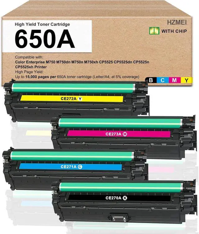 Original code:650A CE270A Black Toner, 650A CE271A Cyan Toner, 650A CE272A Yellow Toner, 650A CE273A Magenta Toner