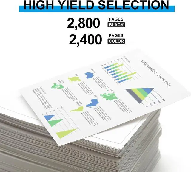 Page Yield: Print up to 2,800 Pages per Black, 2,400 Pages per Color Cartridge at 5% Coverage on Letter/A4