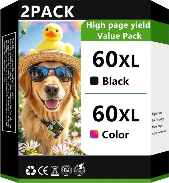 Contents: 2-pack of 60xl ink cartridges remanufactured for hp 60 ink cartridge combo pack color and black for hp 60xl high yield