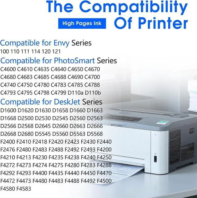 Printer Compatibility: Compatible for DeskJet 1000 1010 1011 1012 1015 1050 1050a 1051 1055 1056 1510 1511 1512 1513 1514 1517 2000 2050 2050a 2050s 2054a 2510 2511 2512 2514 2540 2541 2542 2543 2544 2545 2546 2546B 2546R 2547 2548 2549 2546P 3000 3050 3050a 3051 3051a 3052 3052a 3054 3054a 3055a 3056 3056a 3057a 3059a 3060 3510 3511 3512 3516 Printer