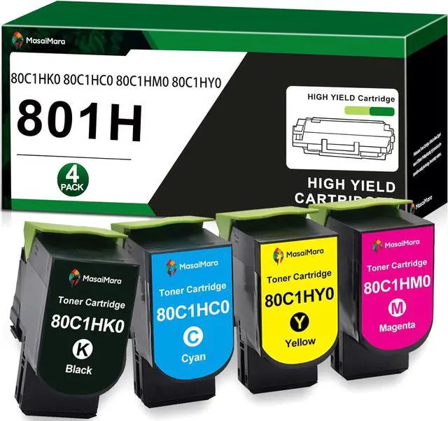 Model Compatibility: This toner cartridge kit is model 801H, also identified as 80C1HK0, 80C1HC0, 80C1HM0, and 80C1HY0, ensuring you receive the correct component for your printing needs.