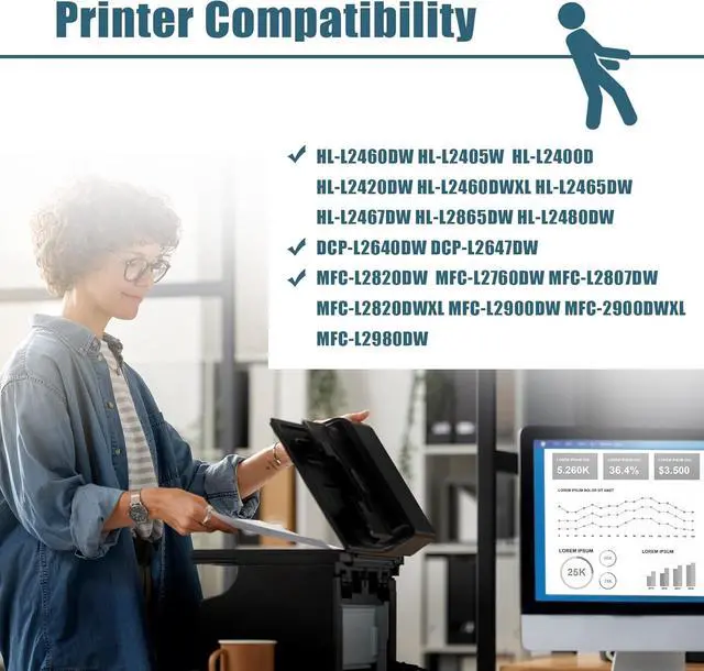 Compatible Printers: Compatible TN830XL TN-830XL Black Toner Cartridge Compatible for HL-L2460DW HL-L2405W DCP-L2640DW HL-L2400D MFC-L2820DW HL-L2420DW HL-L2460DWXL HL-L2465DW HL-L2467DW HL-L2865DW HL-L2480DW DCP-L2647DW MFC-L2760DW MFC-L2807DW MFC-L2820DWXL MFC-L2900DW MFC-2900DWXL MFC-L2980DW Printers.
