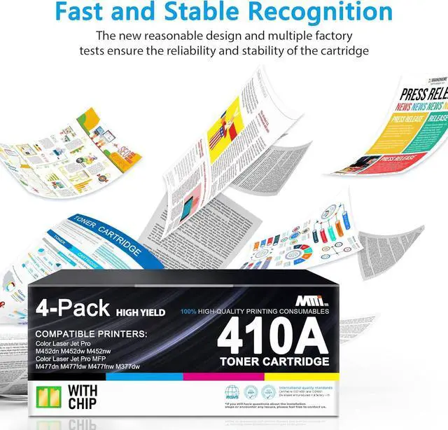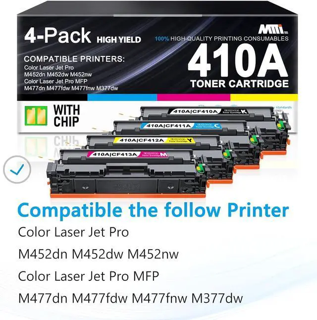 Compatible with: 410A with chip compatible with HP Color Laser Pro M452dn M452dw M452nw, Color Laser Pro MFP M477dn M477fdw M477fnw M377dw Series Printers