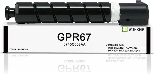 The packaging contains: 1 Pack of GPR-67 Black Toner Cartridge 5745C003AA
