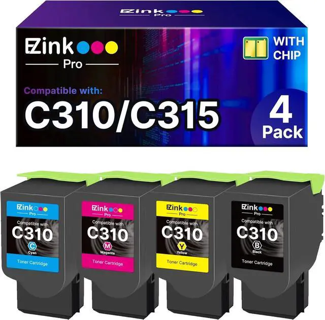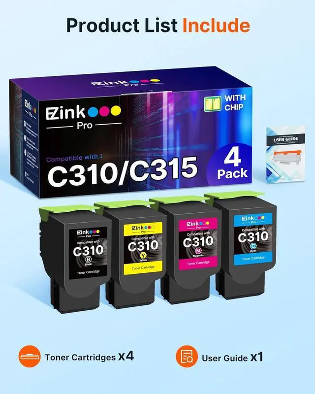 Package contents: 1 x User Guide, 1 x C310/C315 Black, 1 x C310/C315 Cyan, 1 x C310/C315 Magenta, 1 x C310/C315 Yellow (Total 4 Pack)