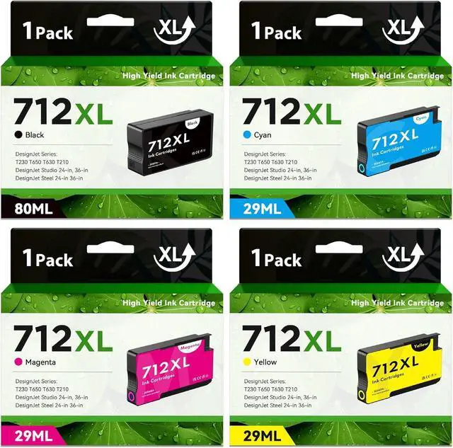 Package Contents: 4-Pack 712xl Ink Cartridge-3ED71A 3ED67A 3ED68A 3ED69A (Black/Cyan/Magenta/Yellow)